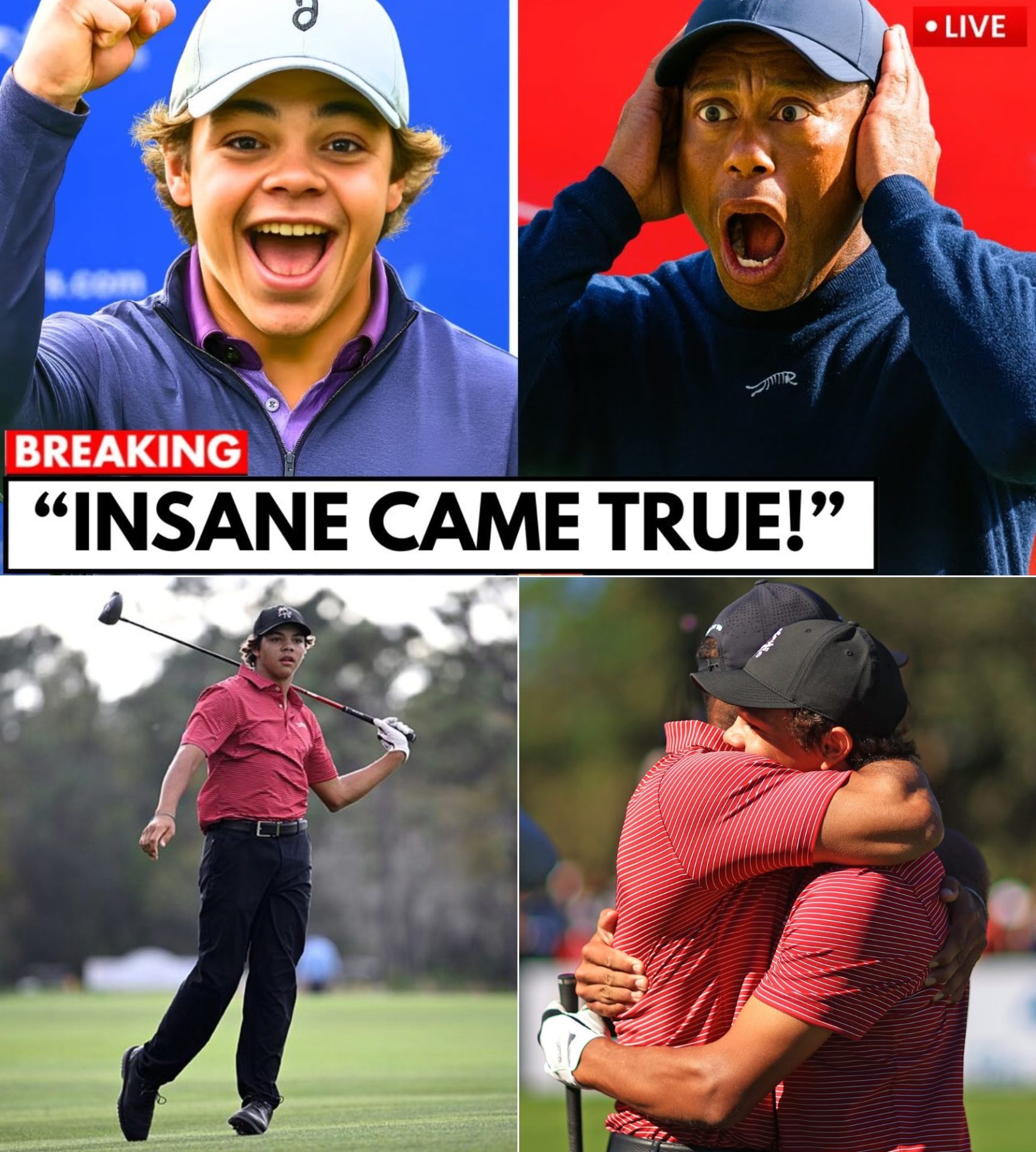 But here’s the twist: according to whispers from those close to the Woods camp, Tiger had warned Charlie just weeks ago that the “spotlight would come sooner than he was ready for.” And now, golf insiders are speculating that this might push Tiger to take a more hands-on role in shaping his son’s career — maybe even a Tiger-Charlie coaching duo that could shake the golf world.